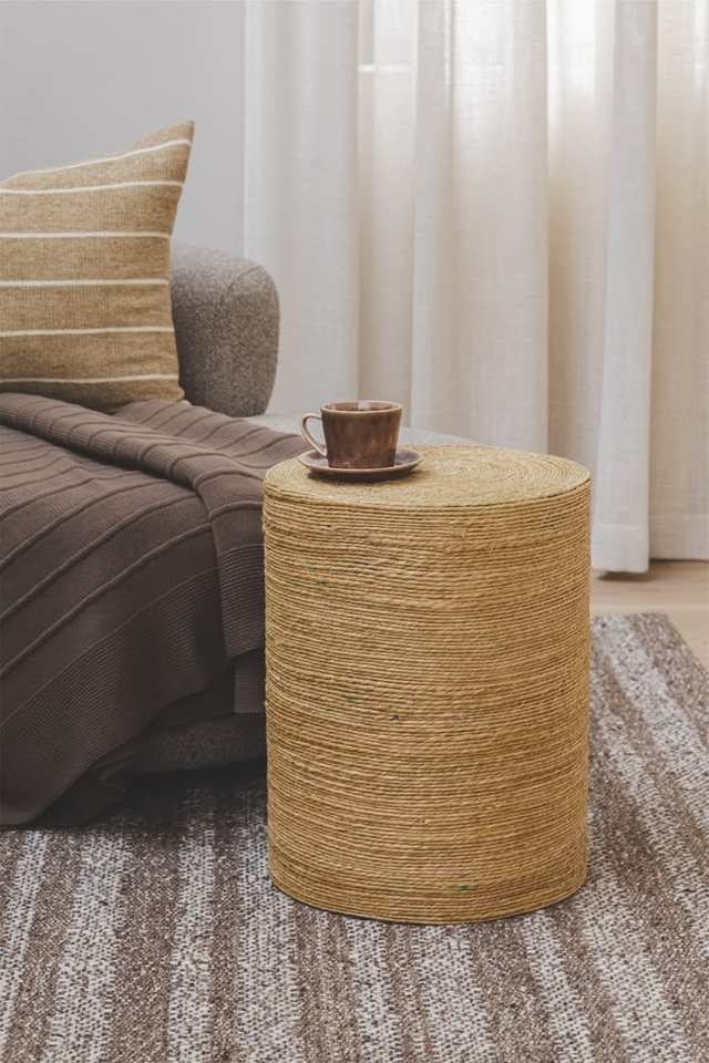 Designer Rope Side Table With Durable Wooden Surface For Living Room Sofa Side And Bedroom Use
