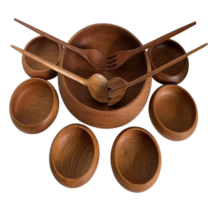Handmade Designer Large Capacity Acacia Wood Wave Salad Bowl Serving Utensils for Home or Restaurant Use