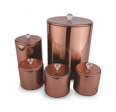Designer Set of 4 Copper Container With Lid Kitchenware Sugar Tea Coffee Storage Antique Container Pots