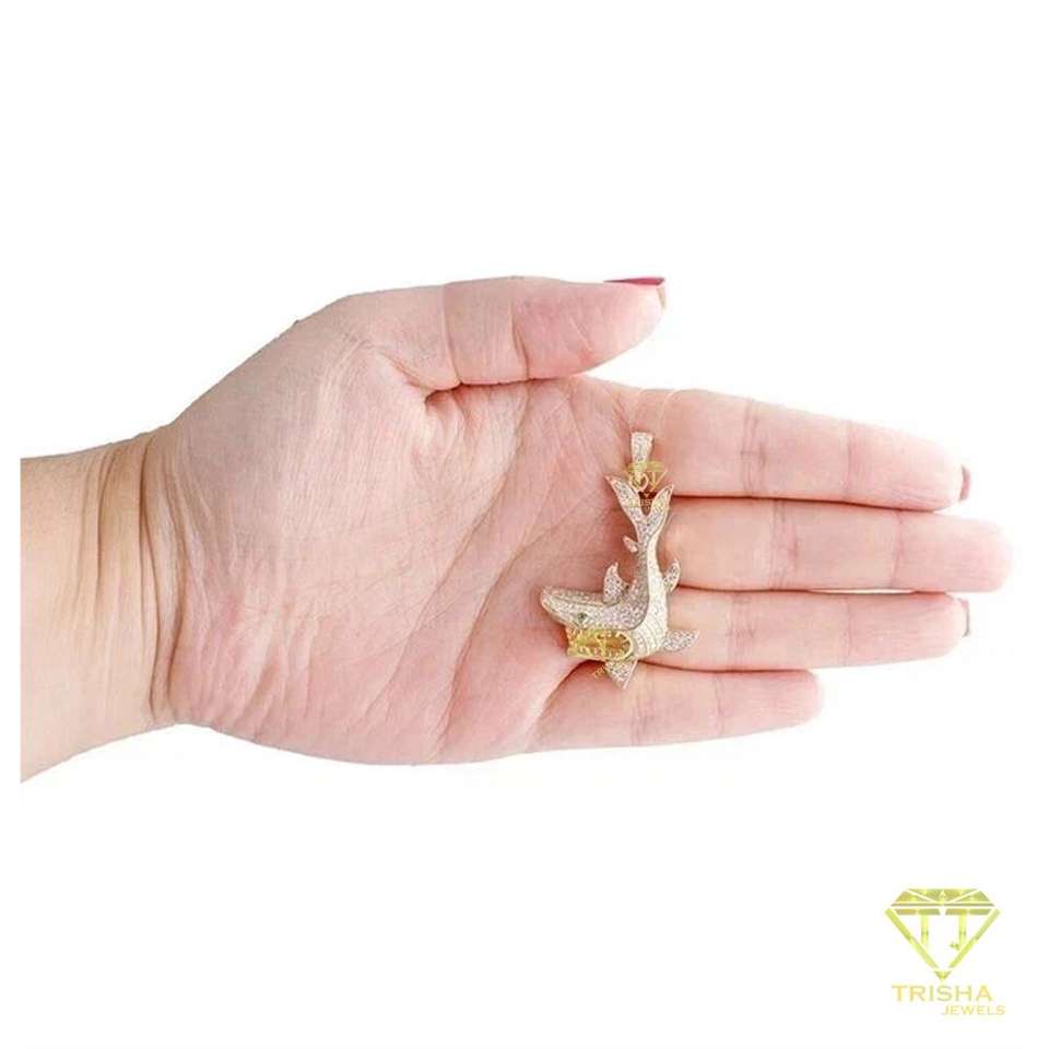 Designer Shark Face Iced Pendant Necklace with VVS Lab Grown Diamonds Gold Plated 925 Sterling Silver Hip Hop Style