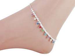 Designer Silver Anklet Crystal Charm Anklet Sparkling Silver Anklets for Women and Girls Wear in Wedding Party, Hldi, Mehendi