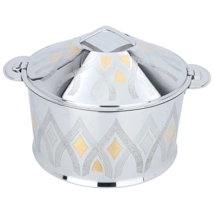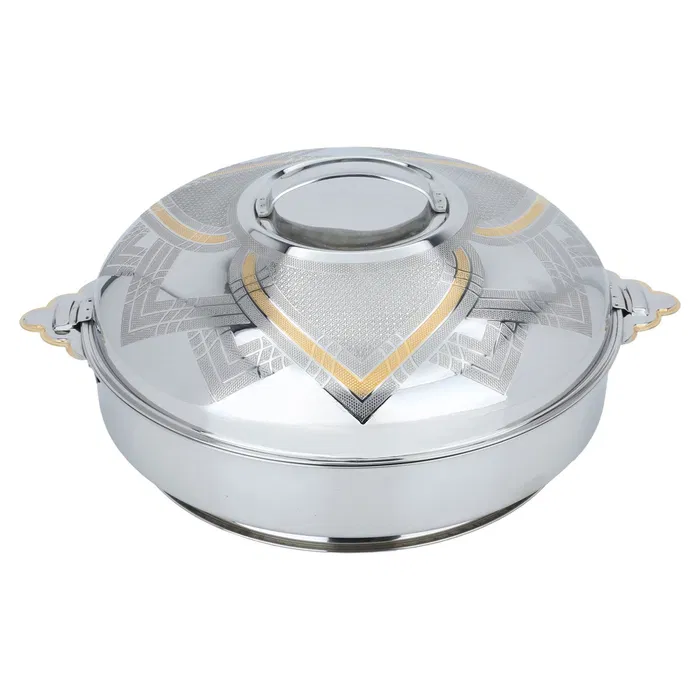 Designer Silver Gold Engraved Casserole Handcrafted Stainless Steel Food Warmer Bowl for Kitchen & Dining Table