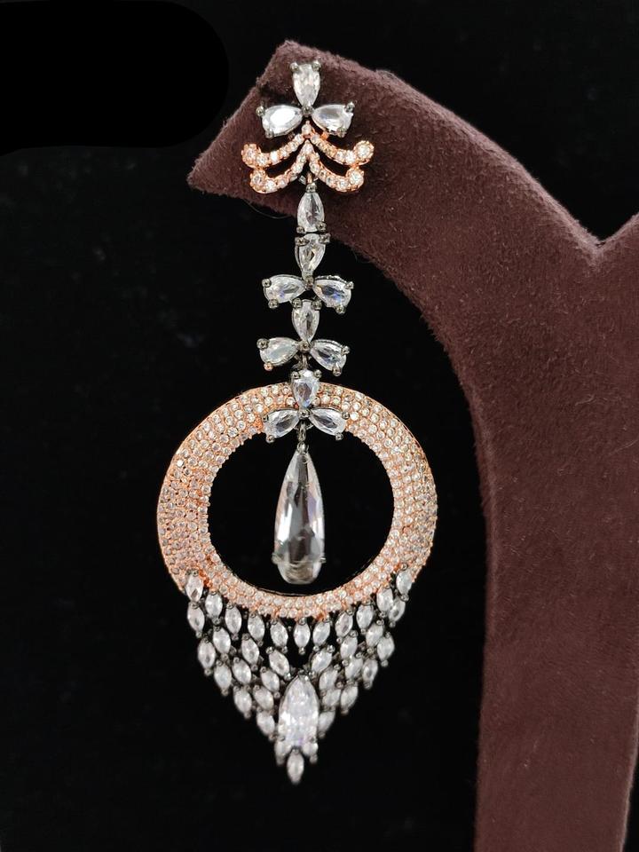 Designer Silver Plated CZ Jhumka Earrings Sparkling Zircon Stones for Wedding Engagement Parties Fashion Accessories Made Brass