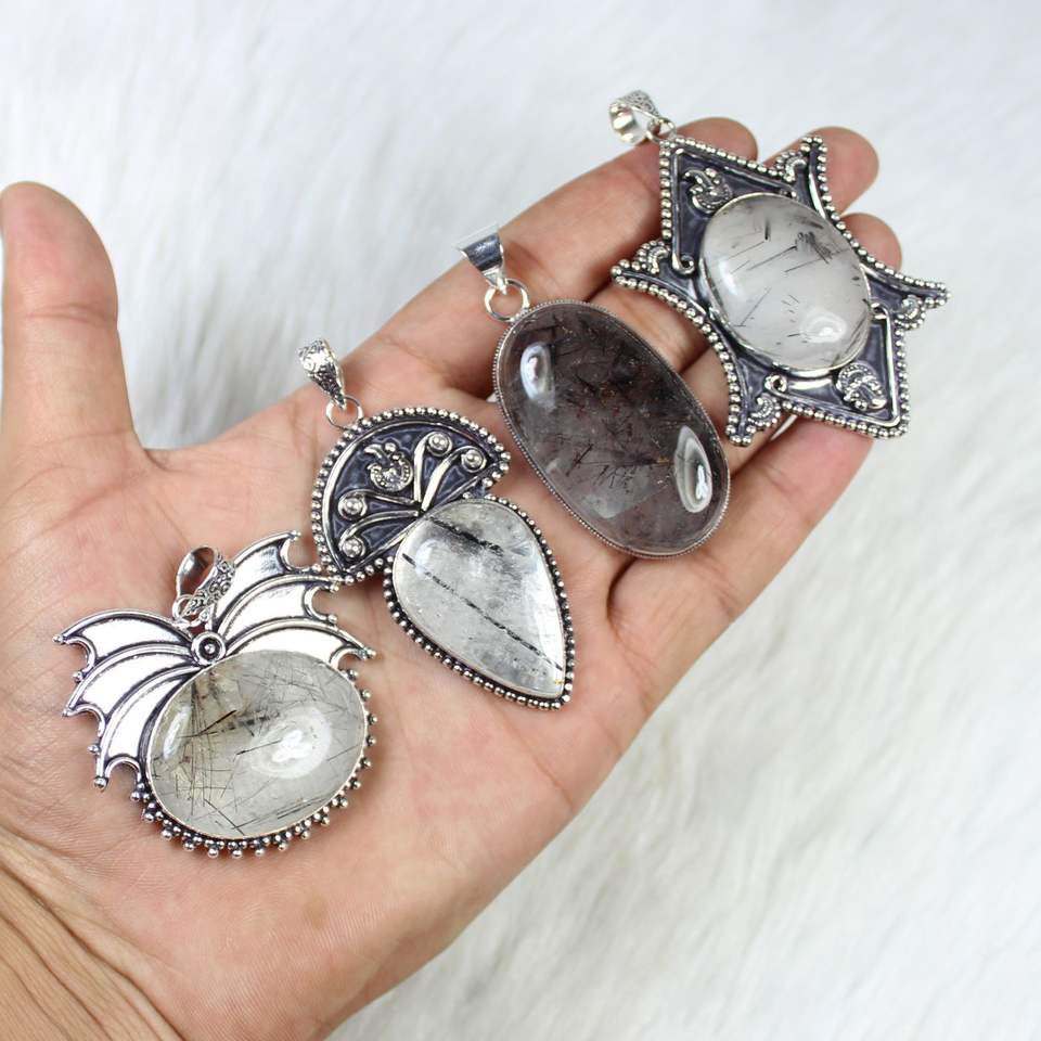 Product Name:Black rutile silver plated pendants