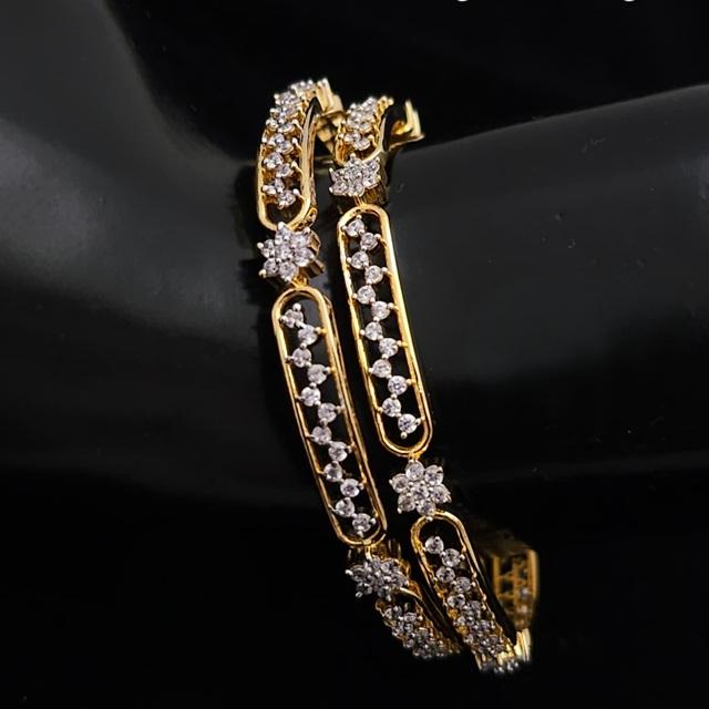 Designer Simple Look Gold White Finish AD Stones Look Two Set Of Bangles for Women Wedding Party Wear Collection For Girls