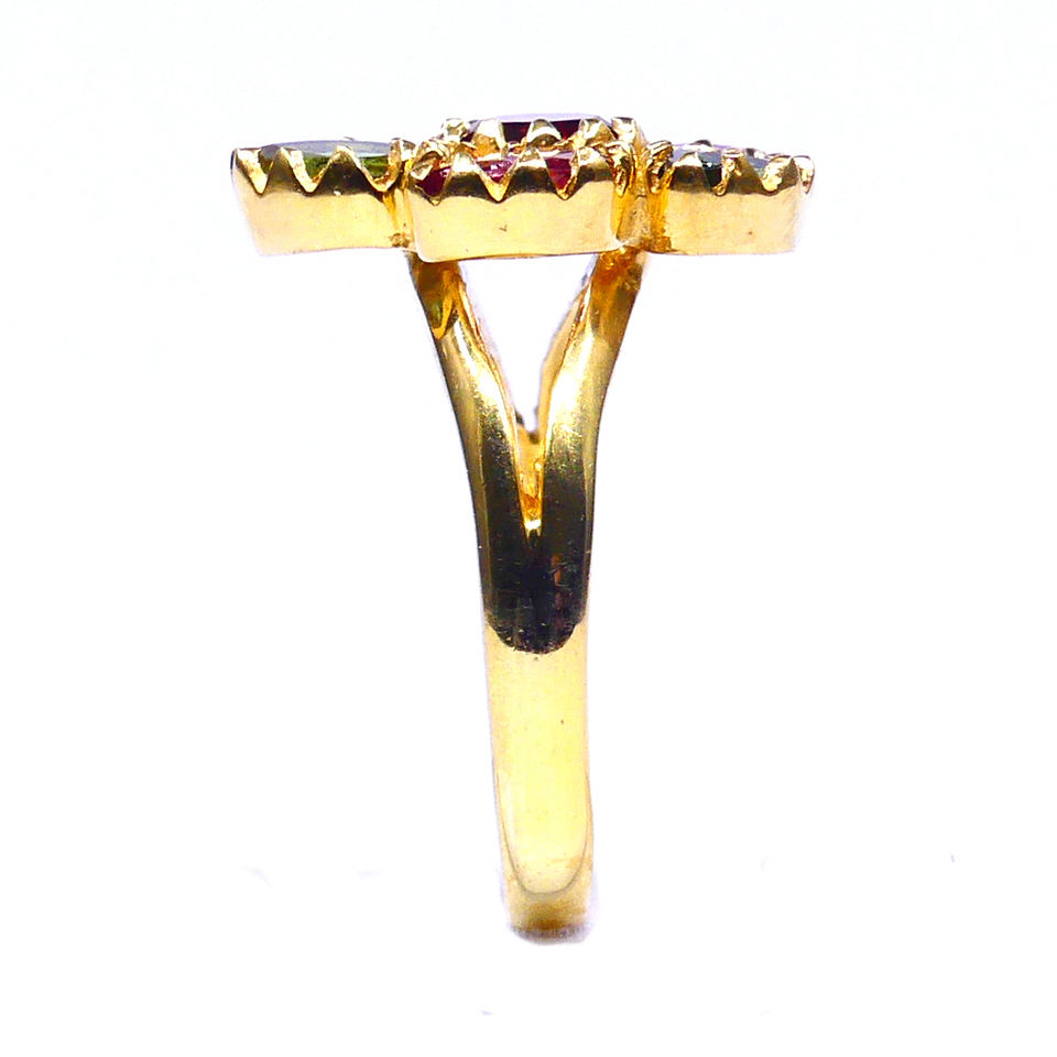 Designer Sterling Silver 925 Gold Plated Multi Tourmaline Gemstones Wedding Women Wear Fashion Finger Ring
