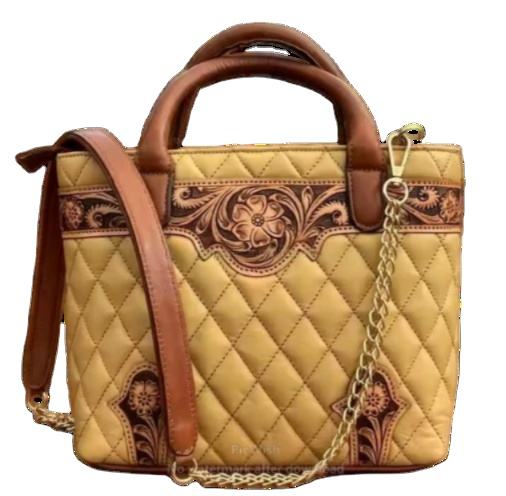 Unisex Bohemian Eco-Friendly Quilted Leather Tote Bag with Handmade Design for Year-Round Travel & Everyday Use