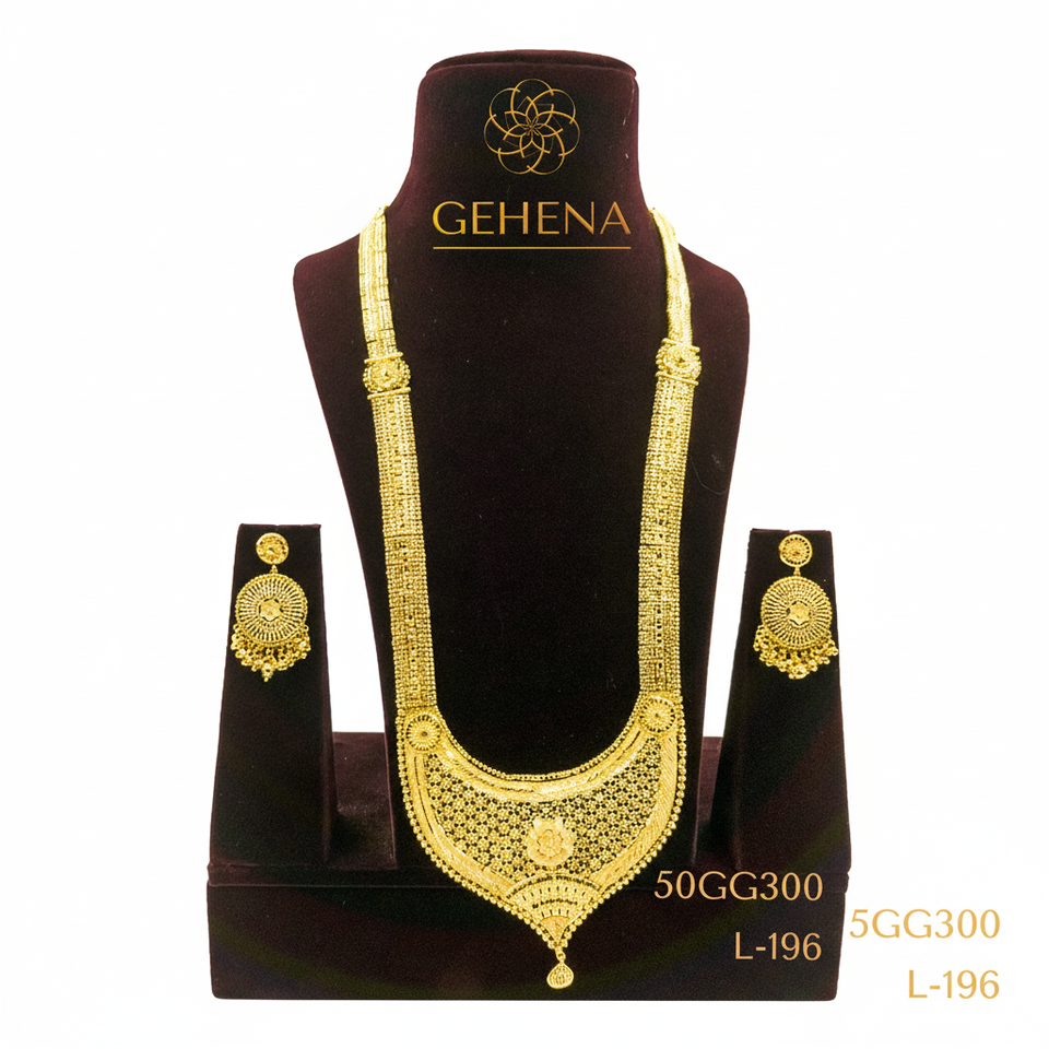 Designer Stylish Trendy 24K Gold Plated 5 Gram Long Necklace Set Earring Ring Sexy Elegant Fashion Jewelry for Wedding Party