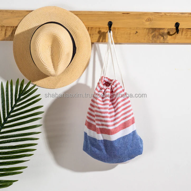 Designer Summer Striped Beach Towel Zipper Closure Two Handles Portable Stylish Fouta Towel Indian Manufacturer Inspired Turkish