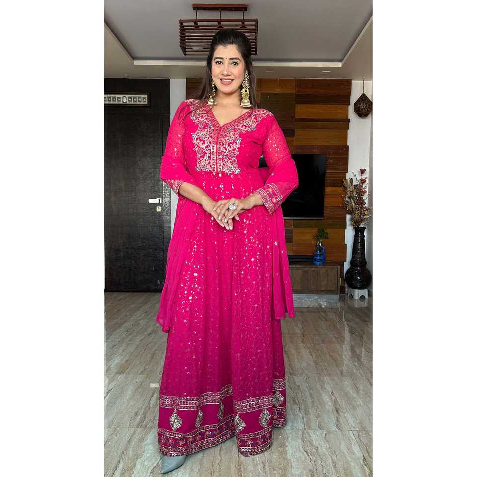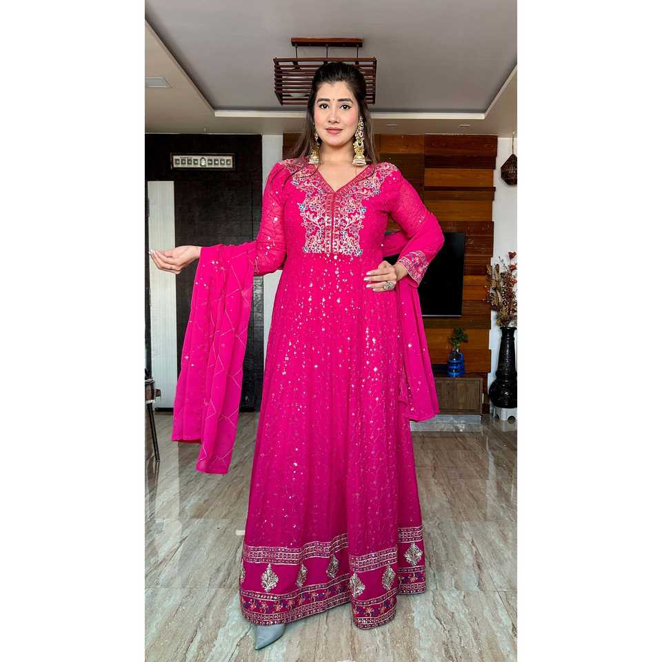 Designer Traditional Chinese Clothing Gown with Pent and Dupatta Embroidery Sequence Work