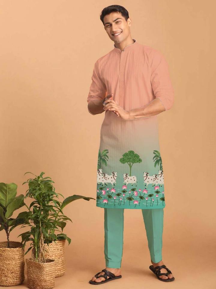 Designer Traditional Fashion Men's Cotton Kurta Printed Indian Festival Wedding Wear Collections Party Clothes High Quality