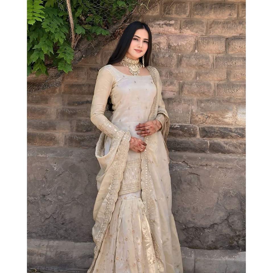 Designer Traditional Muslim Clothing & Accessories Fancy Style Party Wear Top Sharara Dupatta