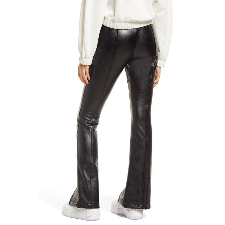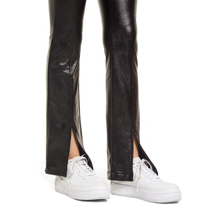 Designer Trendy Streetwear Custom Wholesale Black Leather Pants Mid Waist Slim Jeans Stacked Sweatpants Canvas Man Trouser