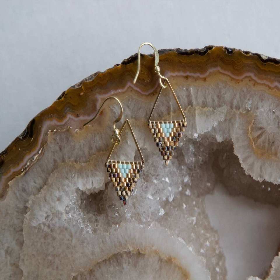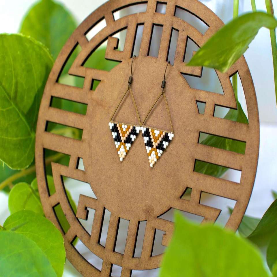 Designer Triangle Patterned Earrings Brass Gold Plated Beaded Earrings Jewellery for Women and Girls Wear in Wedding Party's
