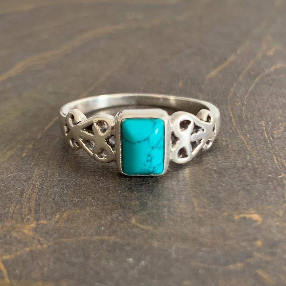 Designer Turquoise Ring (3.2 Grams) Fashionable Alloy Gemstone Ring Bezel Setting Statement Jewelry for Christians Perfect Gift