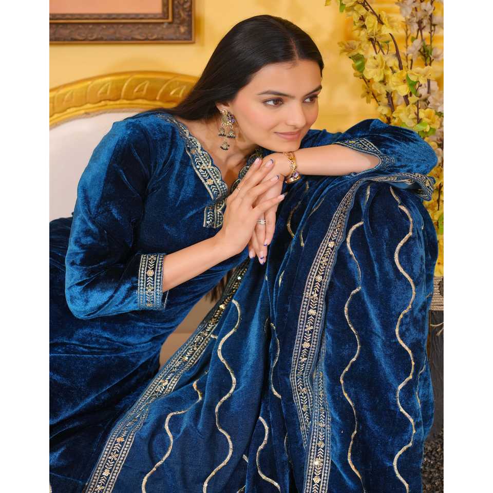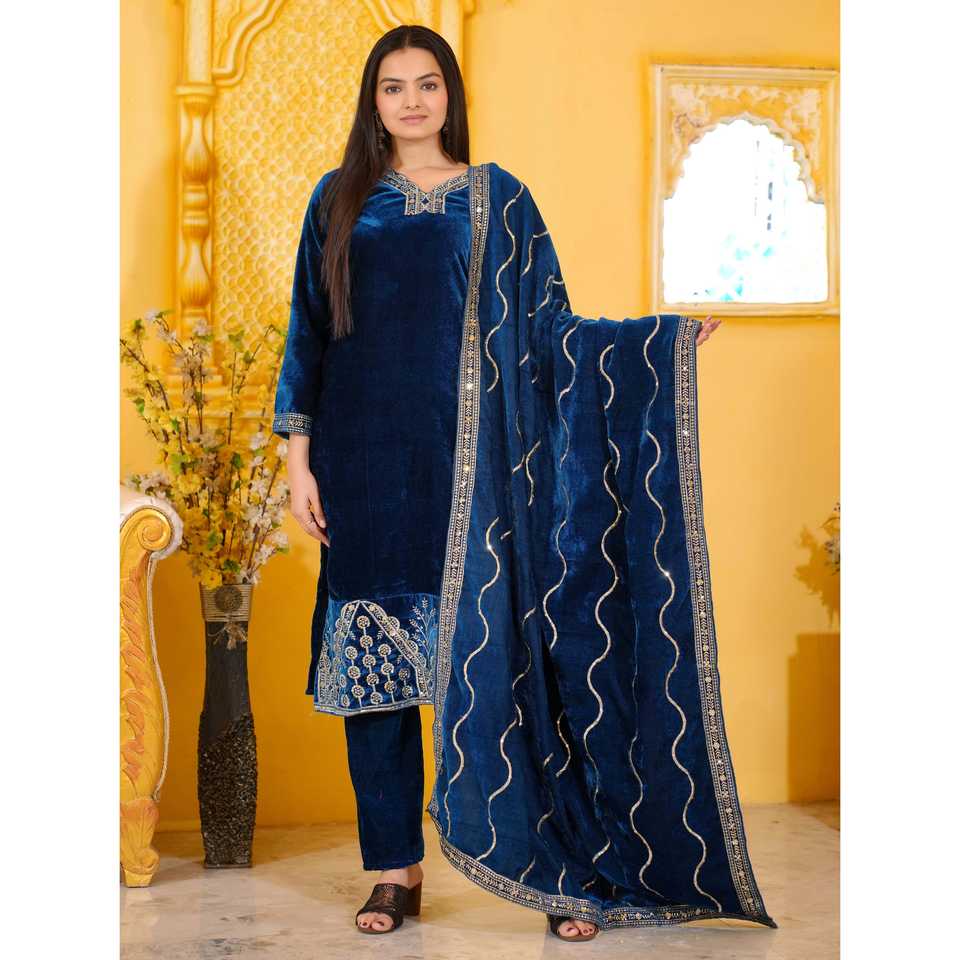 Designer Velvet Suit for Party Wear Embroidered Indian & Pakistani Clothing