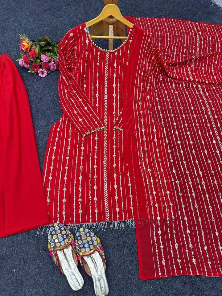 Product Name:Faux Georgette Sequence And Thread Work Top Palazzo Dupatta