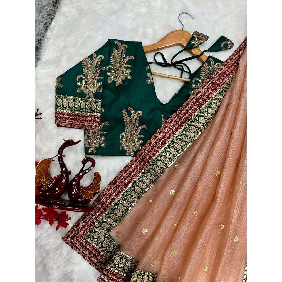 Designer Wedding Saree with Sequins Cording Embroidery Work and Lace Border