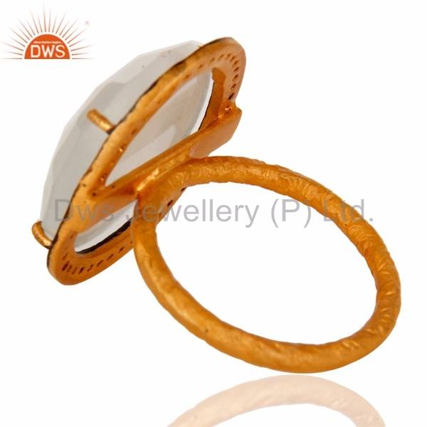 Designer White Moonstone Ring With CZ in Gold Over brass Supplier of Fashion Jewellery Vintage Collection