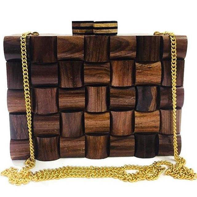 Designer Women's Evening Fashion Wooden Clutch Bag Crystal Fashion Accessories