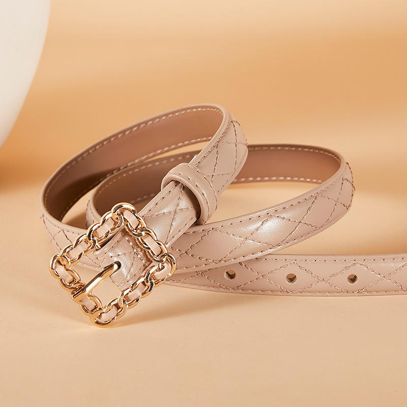 Designer Women's Genuine Cow Hide Leather Belt with Vintage Chain Square Buckle Western Style Alloy Metal Made in Pakistan