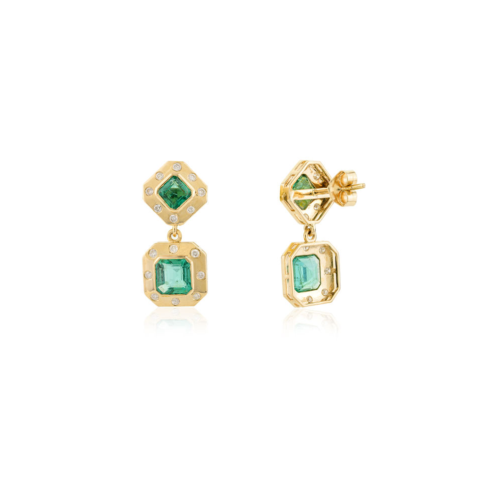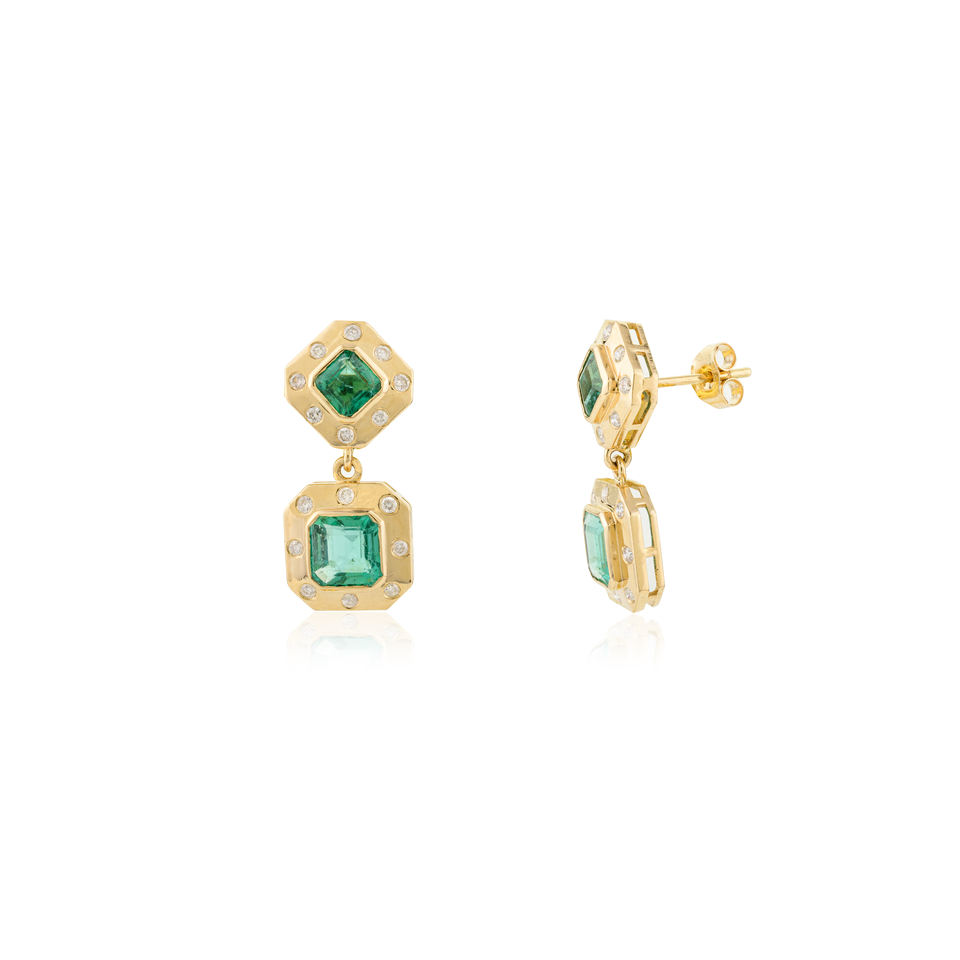 Designer Women's Luxury Best Quality 18k Solid Yellow Gold Natural Emerald Brilliant Cut Dangle Earrings Anniversary Gift