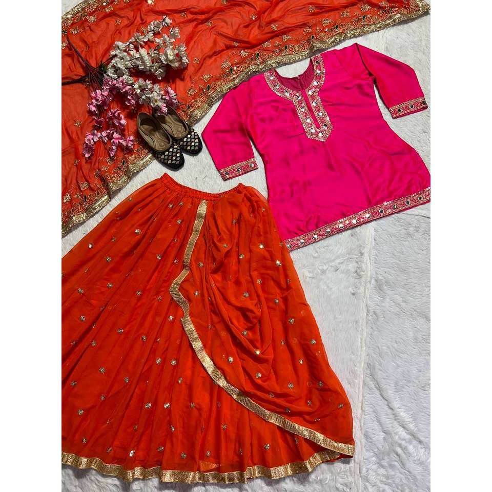 Designer Women's Party Wear Set Top Dhoti Skirt Dupatta-Elegant and Stylish Look!