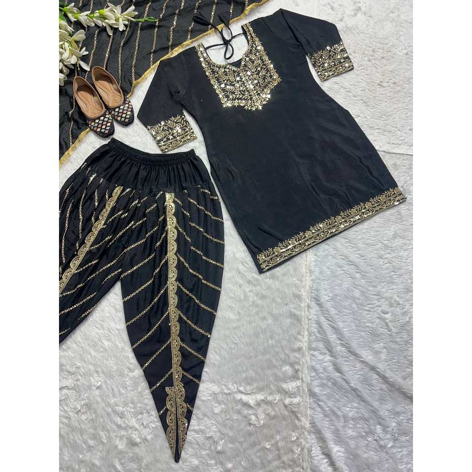Designer Women's Party Wear Set Elegant Top Dhoti Salwar Dupatta