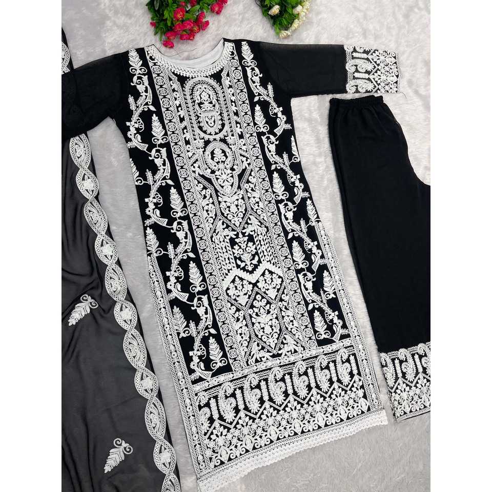 Designer Women's Party Wear Top Bottom Dupatta with Stitched Work Elegant Set