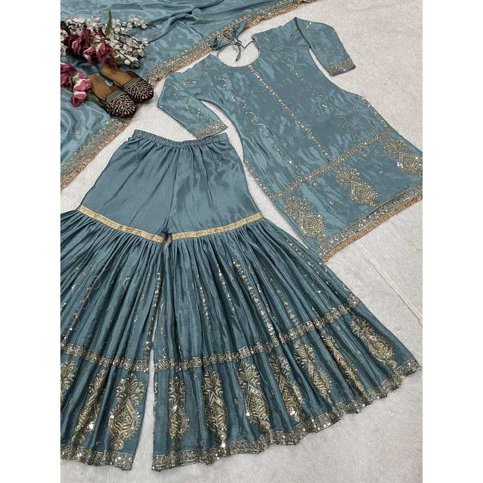 Designer Women's Party Wear Top Bottom Dupatta Set with Fancy Borders and Lace Work