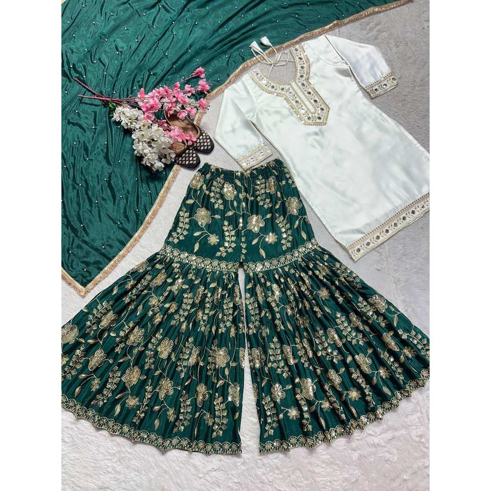 Designer Women's Party Wear Top and Sharara Set with Hand Paper Mirror Work
