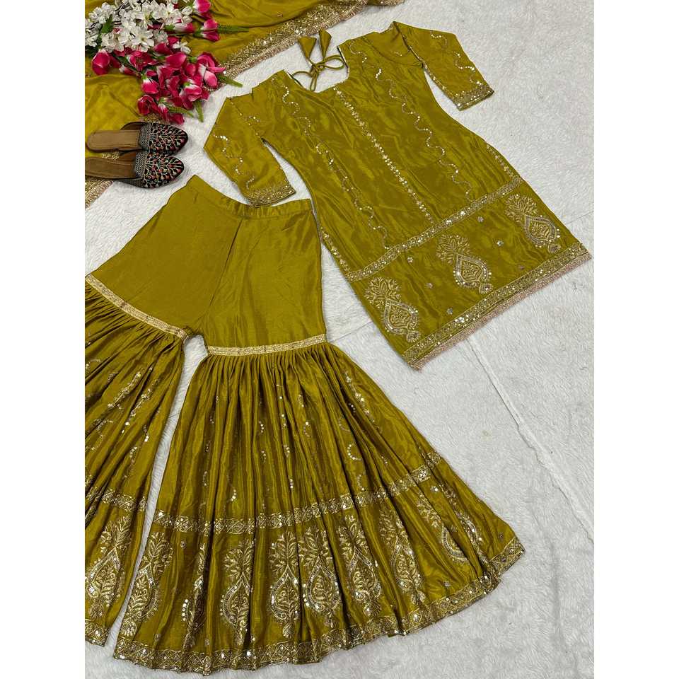 Designer Women's Party Wear Top Bottom Dupatta Set with Fancy Borders and Lace Work