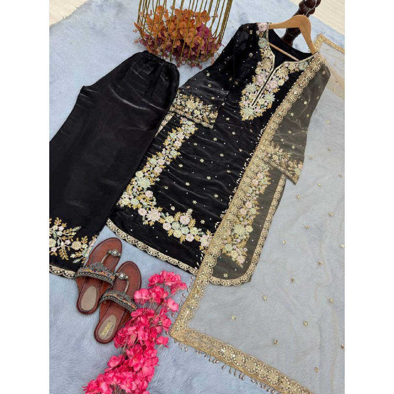 Designer Women's Silk Top & Plazzo Dupatta Set for Party Wear Look