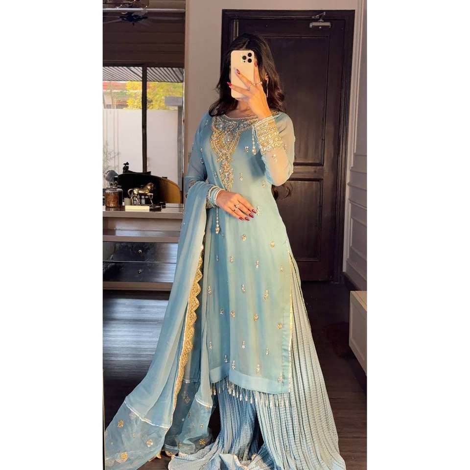 Designer Women's Top-Bottom and Dupatta Set with Heavy Embroidery Sequence Work
