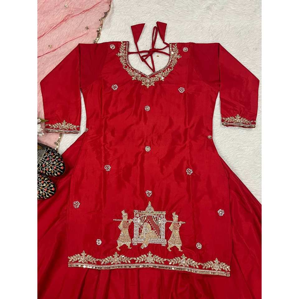 Designer Women's Top Lehenga Set with Multi Needle Embroidery Work Sequence Worked Dress