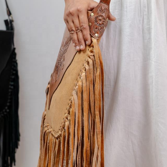Designer Women's Trendy Diamond Lattice Quilt Pattern Hand Tooled Leather Fringe Vintage Summer Winter Crossbody Fashion Zipper