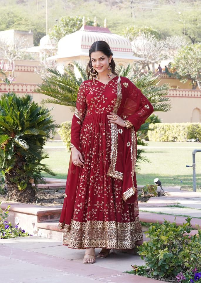 Designer Women's Gown, Faux Blooming with Rich Thread Sequins Designer Wedding Wear Gown, Party Wear Designer Gown.