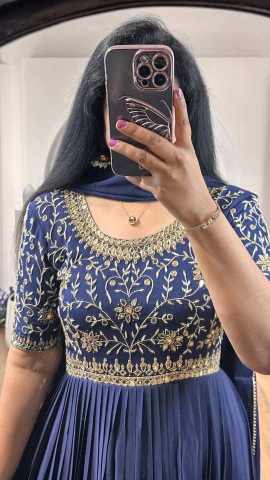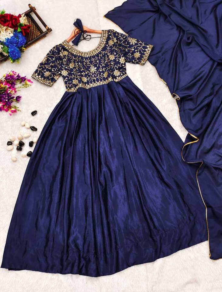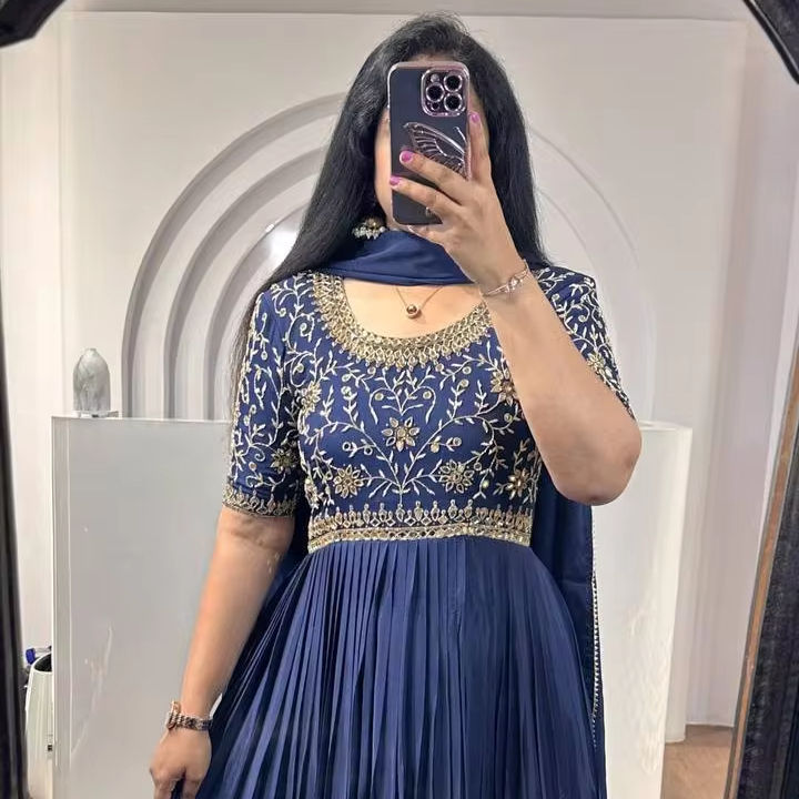 Designer Women's Silk Gown with Georgette Print Embroidery Lace Border Work for Weddings Parties Indian & Pakistani Clothing