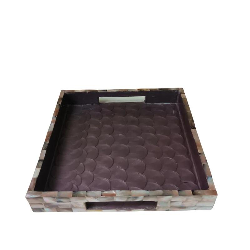 Designer Wooden Tray Collection with Enamel Print and Polished Gold Foil Surface Ideal for Stylish Tea and Coffee Serving