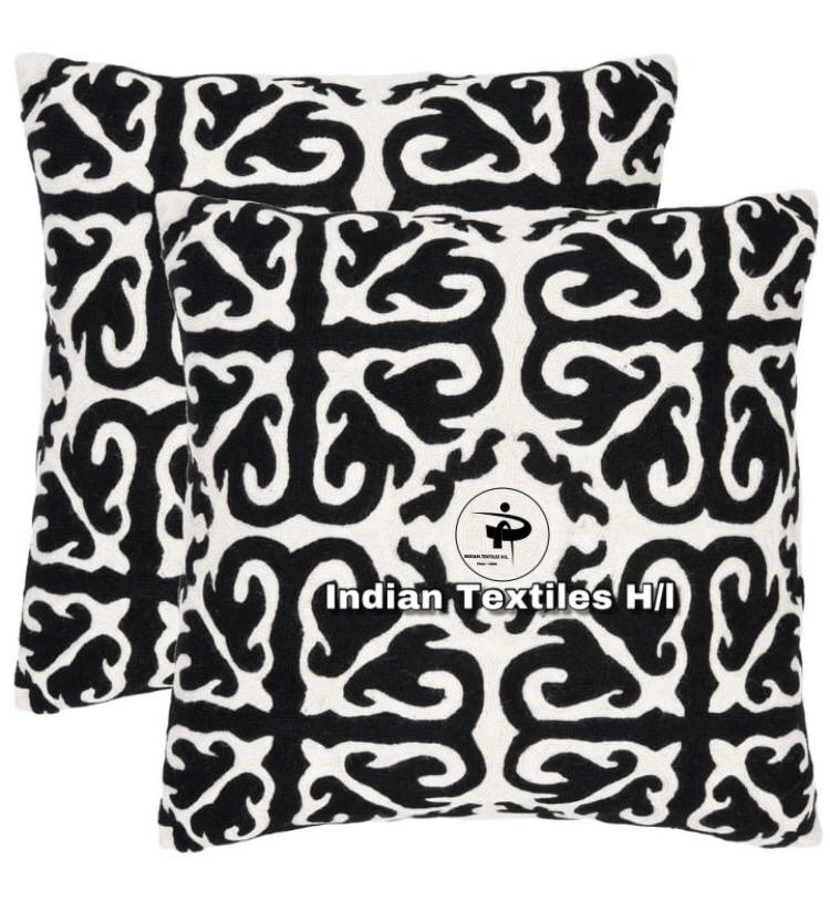 Designer Wool Handmade Crewel Embroidery Wool Chain Stitched Cushion Cover For Sofa Couch Living Room Hot Selling Product