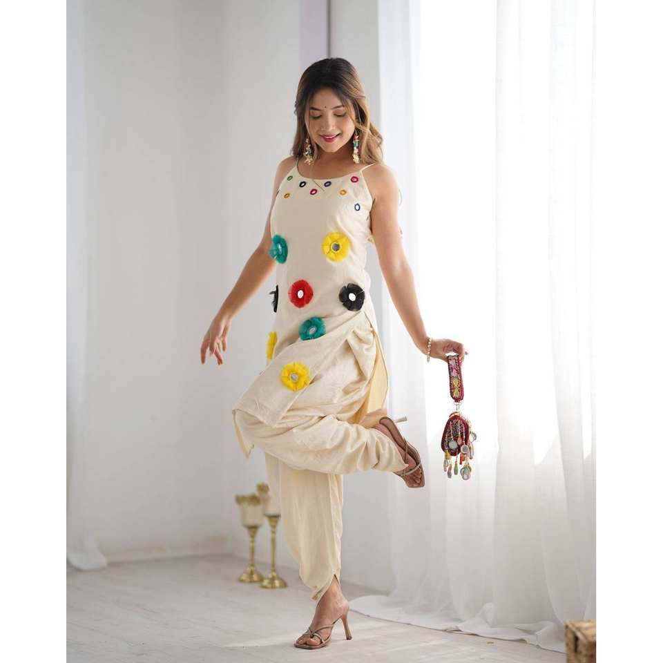 Designer XS Size Top and Bottom with Mirror Khatli Work Fancy Look