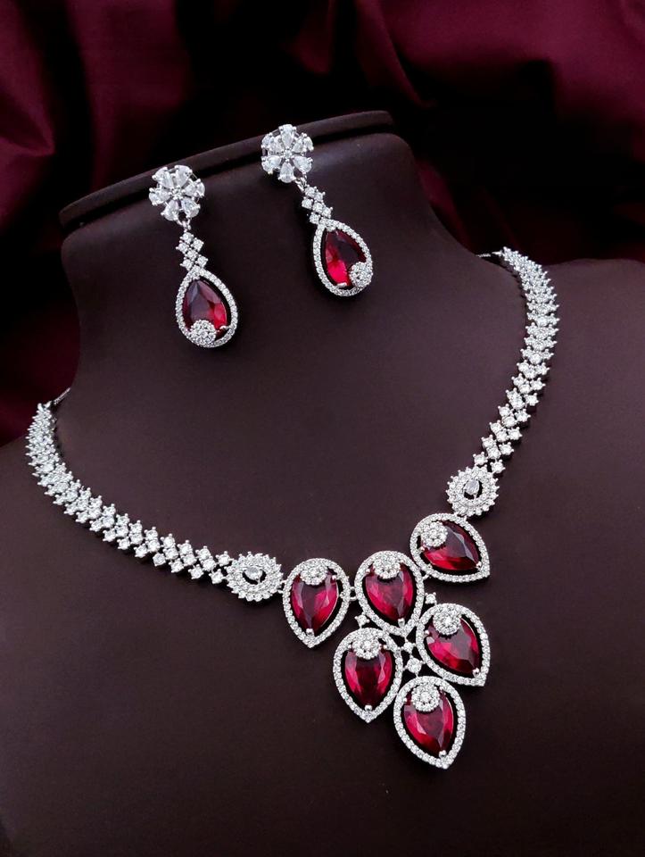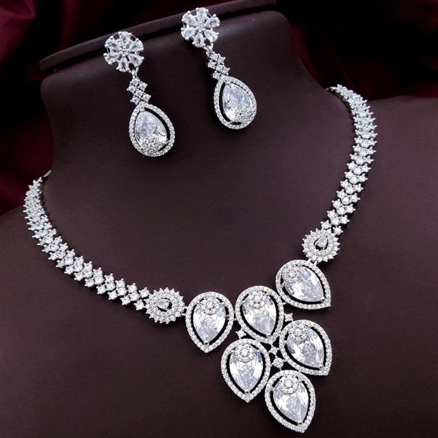 Designer Zircon Diamond Necklace Set With Earrings Gold Finish Necklace Set for Wedding CZ Zircon Diamond Wedding For Women