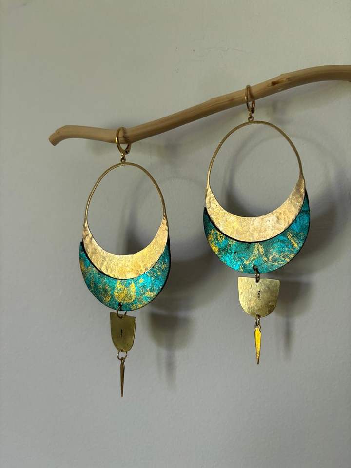 Designer ethnic brass earrings for women with handcrafted floral elements and oxidized gold finish for traditional wear