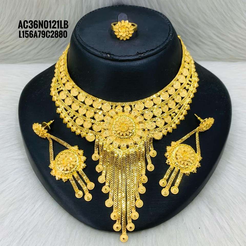 Designer Gold Plated Brass Necklace Set Flower Pattern Box Chain for Wedding Party Gift
