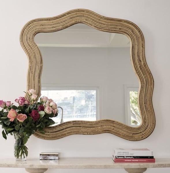 Designer wooden wall mirror frame with premium polished and handcrafted accents for elegant home decorations