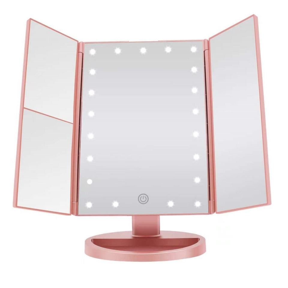 Desktop Cosmetic Mirror 180 Degree Rotation Magnification 3x/2x Makeup Mirror with Trifold Vanity Mirror With Light