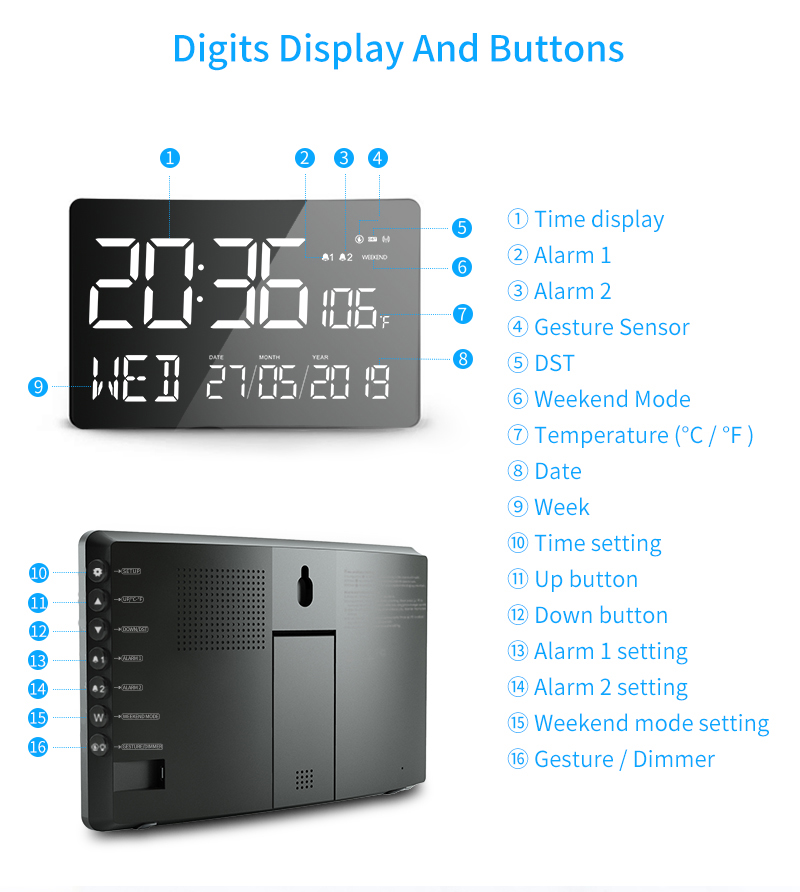 Desktop LED Simple clear Digital Calendar Date Display DST Alarm Clock With Temperature Dementieklok for Elderly Senior