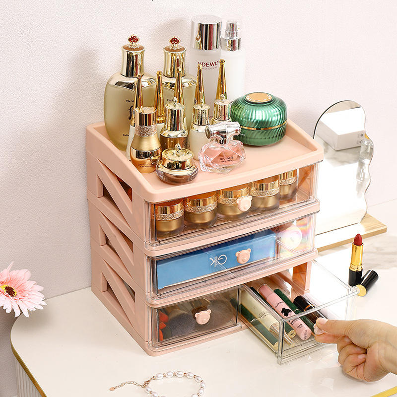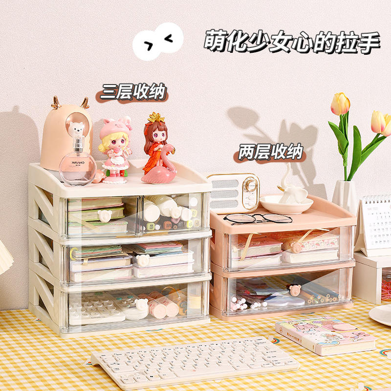 Desktop Multi Layer Cosmetic Storage Box Rectangular Drawer Style Covered Compartments Office Organizer Student Dormitory Use