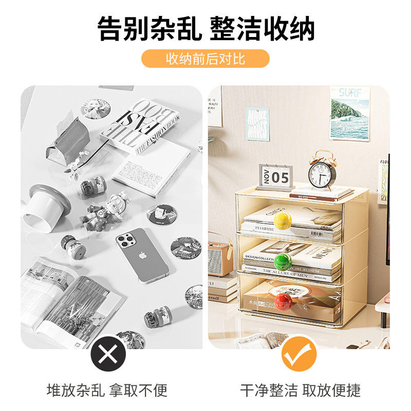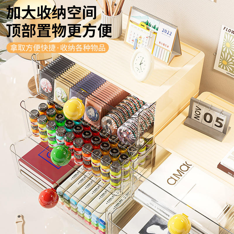 Desktop Organizer Drawer Style With Handles For Stationery Cosmetics Storage Rectangle Standing Type 8298-9 Cream Yellow