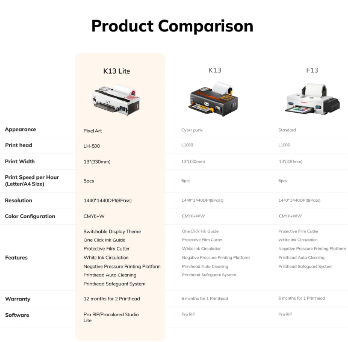 Desktop Startup Small Business Freeshipping DTF T-Shirt DIY K13 Lite Procolored 13" A3 - White For Beginner DTF Printer Machine